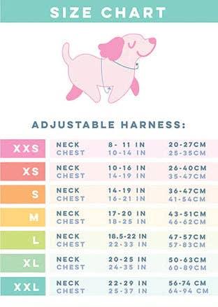 Adjusts at the neck and chest for the perfect fit. Pair this harness with our matching leash!