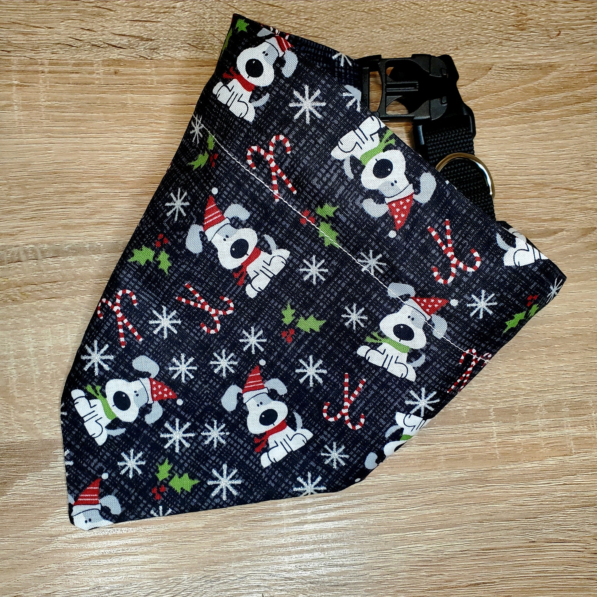 The cutest bandanas featuring peppermint, holly, and a dog that looks a little familiar. 😉